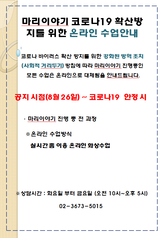 2020 ¸¶¸®À̾߱â Äڷγª19 È®»ê¹æÁö¸¦ À§ÇÑ ¿Â¶óÀÎ ¼ö¾÷¾È³»