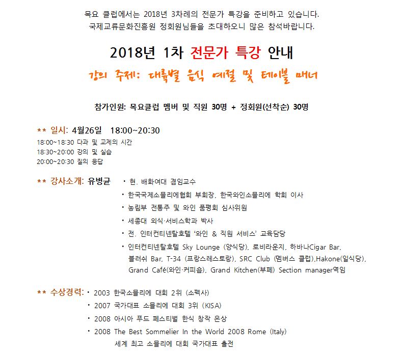 2018 ¸ñ¿äŬ·´-Á¦1Â÷ Àü¹®°¡ Ư°¿¡ ÃÊ´ëÇÕ´Ï´Ù (Á¤È¸¿ø¿ì´ë)