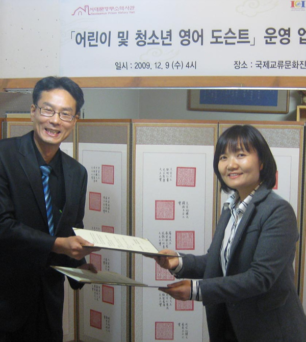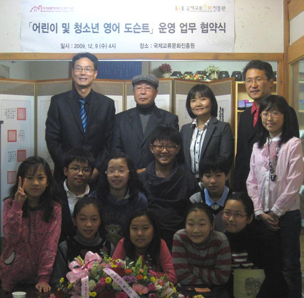 ±¹Á¦±³·ù¹®ÈÁøÈï¿ø »êÇÏ Ã»¼Ò³â ÀÚ¿øºÀ»ç´Ü ¼Ò¼Ó '¾î¸°ÀÌ ¹× û¼Ò³â¹®ÈÀ¯»êÇØ¼³»ç'ÀÇ ¼´ë¹®Çü¹«¼Ò¿ª»ç°ü ÀÚ¿øºÀ»ç ÆÄ°ßÀ» À§ÇÑ '¾î¸°ÀÌ ¹× û¼Ò³â ¿µ¾î µµ½¼Æ® ¾ç¼º ¹× Ȱµ¿'¿¡ °üÇÑ ¾÷¹«Çù¾à½ÄÀÌ 2009³â 12¿ù 9ÀÏ (¼ö) ¿ÀÈÄ 4½Ã ±¹Á¦±³·ù¹®ÈÁøÈï¿ø¿¡¼ ÁøÇàµÇ¾ú½À´Ï´Ù.