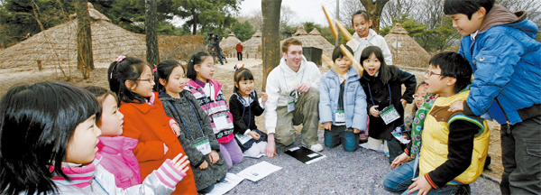 ¡°How to make a pit house?(¿òÁýÀº ¾î¶»°Ô ¸¸µå³ª¿ä?)¡± ¡°First, dig a pit and harden the ground. Second, raise wooden posts and tie down the rafters. Rafters are the parts where all of the posts meet.¡¦(ù°, ¶¥À» ÆÄ¼ ¹Ù´ÚÀ» ´Ü´ÜÇÏ°Ô ÇØ¿ä. µÑ°, ³ª¹« ±âµÕÀ» ¼¼¿ì°í ¼±î·¡¸¦ ¹¾î¿ä. ¼±î·¡´Â ±âµÕµéÀÌ ¸¸³ª´Â °÷ ÀÌ¿¹¿ä.¡¦)¡± ¼¿ï¡®¾Ï»çµ¿ ¼±»çÁÖ°ÅÁö¡¯´Â ±â¿øÀü 3000¡4000³â°æ¿¡ ½Å¼®±â½Ã´ë »ç¶÷µéÀÌ ÇѰ÷¿¡ ¿©·¯ äÀÇ ¿òÁýÀ» Áö¾î Áý´ÜÀ» ÀÌ·ç°í »ì¾Ò´ø Ãë¶ô À¯ÀûÀÌ´Ù. ¿Ü±¹ÀÎ ¼±»ý´Ô¿¡°Ô ¿òÁý ¸¸µå´Â ¹æ¹ýÀ» ¼³¸íÇÏ´Â ¾ÆÀ̵éÀÇ ¿µ¾î ½Ç·ÂÀÌ ¿¹»ç·ÓÁö ¾Ê´Ù.