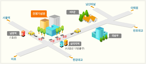 - ÀüÀï±â³ä°ü Á¤¹®/ÈĹ® ¾Õ, ±¹¹æºÎ ¾Õ¿¡¼ ³»¸² - Á¤¹® 0013, 0015 - ÃÊ·ÏÁö¼±, 110, 730 - ÆÄ¶û°£¼± - ÈĹ® 151, 152, 504, 605, 750, 751, 752 - ÆÄ¶û°£¼±, 9502 - »¡°±¤¿ª, ¿ë»ê03 - ÃÊ·ÏÁö¼± |