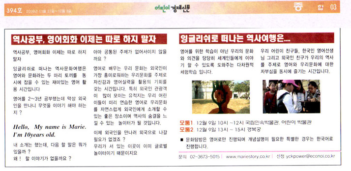 ¸¶¸®À̾߱â [¾î¸°À̰æÁ¦½Å¹® Á¾ÇÕ 394È£ 2006.11.27~12.03]