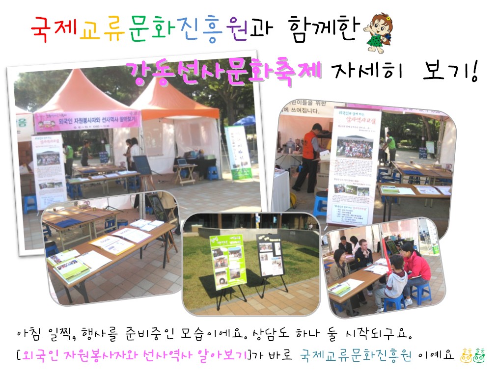 ¸Å ¿ù ¼Â° ÁÖ ÀÏ¿äÀϸ¶´Ù ¾Ï»ç ¼±»çÁÖ°ÅÁö¿¡¼ '¿Ü±¹Àΰú ÇÔ²² ÇÏ´Â ¾Ï»ç¿ª»ç±³½Ç'À» ÁøÇàÇϰí ÀÖ´Â ±¹Á¦±³·ù¹®ÈÁøÈï¿øÀº À̹ø ÃàÁ¦¿¡ Âü°¡ÇÑ ¸¹Àº ¾î¸°À̵éÀÌ ¿Ü±¹ÀÎ ´ëÇлý ÀÚ¿øºÀ»çÀÚ¿Í ÇÔ²² ¹«·á·Î ¿µ¾î¿ª»ç üÇèÇнÀÀ» ÇØº¼ ¼ö ÀÖ´Â '¿Ü±¹ÀÎ ÀÚ¿øºÀ»çÀÚ¿Í ¼±»ç¿ª»ç ¾Ë¾Æº¸±â'ºÎ½º¸¦ ¿î¿µÇÏ¿´½À´Ï´Ù.